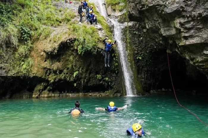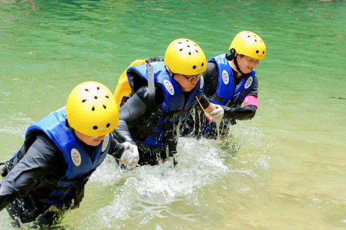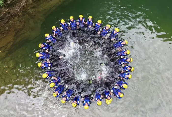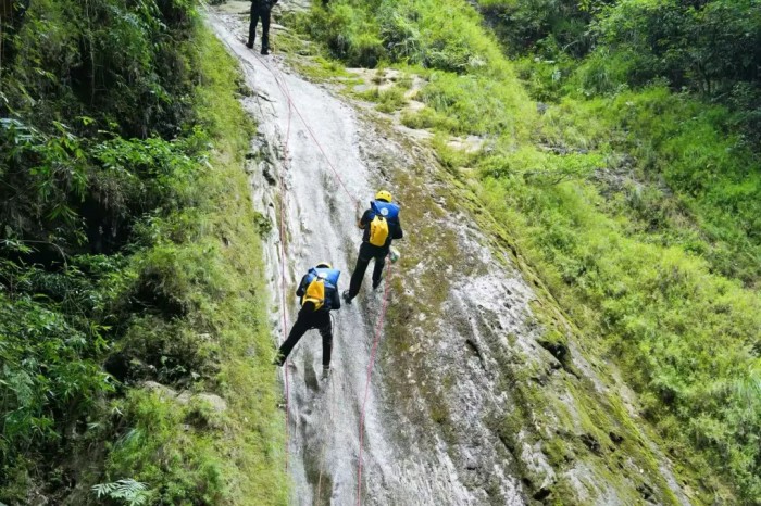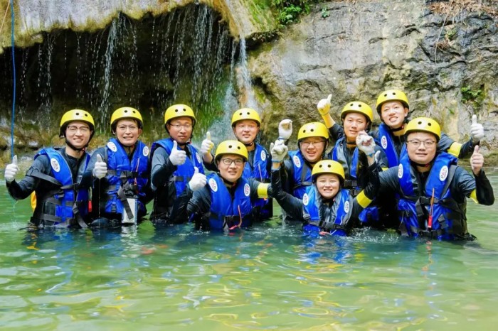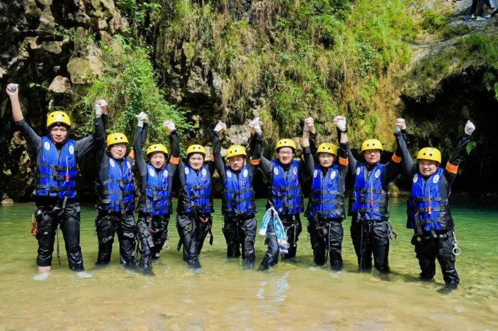 7月12日清晨,6支隊伍再度集結(jié),進行更具挑戰(zhàn)性的戶外項目。在險峻的峽谷之間,參訓隊員完成了近4公里溯溪,以及驚心動魄的10米、40米瀑降,最后是終極挑戰(zhàn)5米跳潭,所有隊員無一人退縮,戰(zhàn)勝恐懼勇敢一躍。在這一天的極限挑戰(zhàn)中,參訓隊員始終把集體榮譽擺在首位,在挑戰(zhàn)中主動擔當、互相鼓勵,不僅圓滿完成任務(wù),更展現(xiàn)出了運營團隊出色的凝聚力、戰(zhàn)斗力和執(zhí)行力。