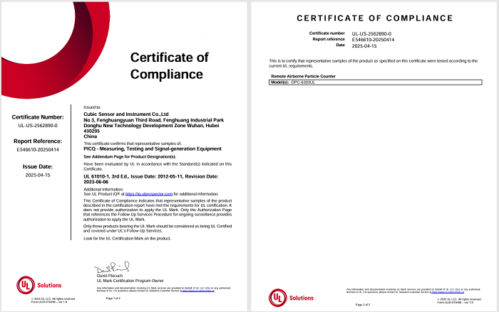 近期,四方光電塵埃粒子計數(shù)器 OPC-6303UL 通過了 UL 61010-1 的測試,獲得 UL 的正式認可。這不僅是對產(chǎn)品質(zhì)量和安全性的認可,也為其在國際市場的推廣提供了有力支持。